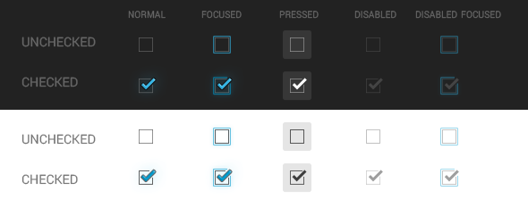 Switches allow the user to select options. There are three kinds of switches: checkboxes, radio buttons, and on/off switches.