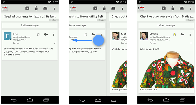 Gmail using swipe views to navigate from detail view to detail view.