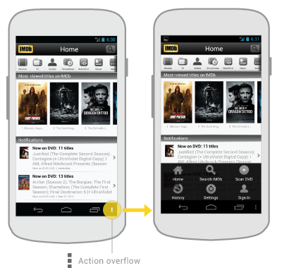 Users access the action overflow by touching it in the action bar.
