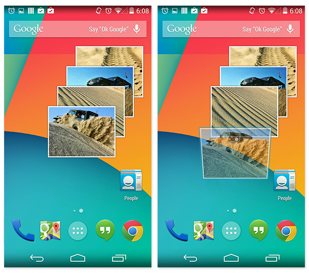 Because widgets live on the home screen, they have to co-exist with the navigation that is established there. This limits the gesture support that is available in a widget compared to a full-screen app. While apps for example may support a view pager that allows the user to navigate between screens laterally, that gesture is already taken on the home screen for the purpose of navigating between home panels.