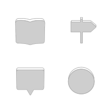Pictographic, flat, not too detailed, with smooth curves or sharp shapes. If the graphic is thin, rotate it 45° left or right to fill the focal space. The thickness of the strokes and negative spaces should be a minimum of 2 dp.