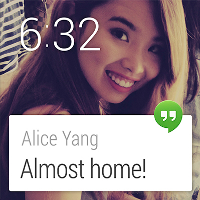 Swiping from left to right on a card causes it to be dismissed from the stream. Dismissed cards may return when they next have relevant information. State is synced between the Android Wear context stream and the notifications on the Android handheld device, so dismissing from one causes an automatic dismissal from the other.