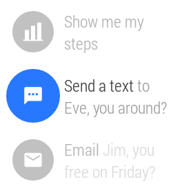 In some instances, further information may be required. In these cases, the most probable default values for these choices should be chosen on the user’s behalf with the option to edit before completing the action. This pattern is in keeping with Android Wear’s core design principle of minimizing interactions required.