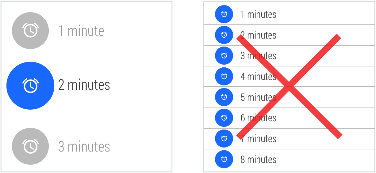 A watch is a perfect form factor for a device that you can use while doing something else, such as cooking, eating, walking, running, or even having a conversation. If using your wearable app causes the user to stop whatever they’re doing, it’s a good occasion to consider how to improve it using the principles in this section.