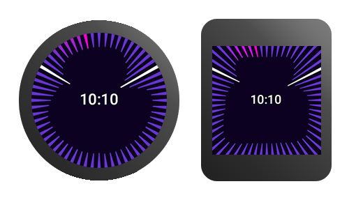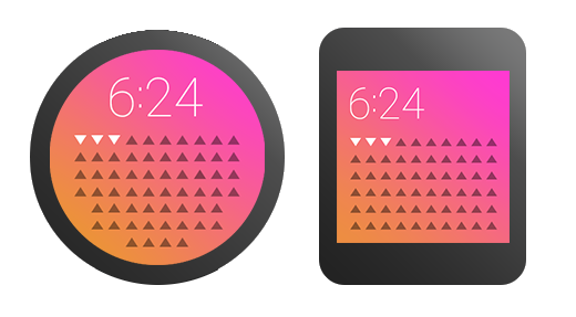 Android Wear devices come in different shapes and sizes. You will need to consider both square and round faces as well as different resolutions. Some concepts work better in a certain format, but a little planning will allow users to enjoy your watch face regardless of screen format.