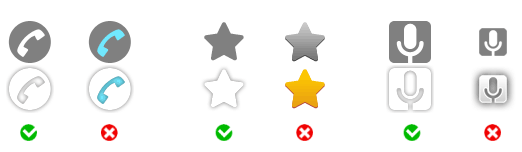 Below are some "do and don't" examples to consider when creating tab icons for your application.