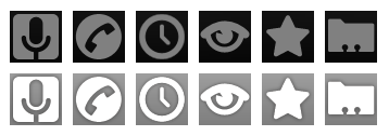 Shown below are standard high-density tab icons that are used in the Android platform.