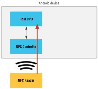 When an NFC card is emulated using host-based card emulation, the data is routed to the host CPU on which Android applications are running directly, instead of routing the NFC protocol frames to a secure element. Figure 2 illustrates how host-based card emulation works.