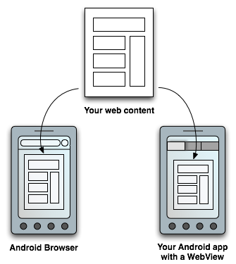 Figure 1. You can make your web content available to users in two ways: in a traditional web browser and in an Android application, by including a WebView in the layout.
