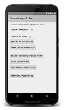 This sample demonstrates how to create a managed profile. You can also: