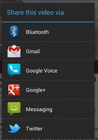 However, if the action to be performed could be handled by multiple apps and the user might prefer a different app each time—such as a "share" action, for which users might have several apps through which they might share an item—you should explicitly show a chooser dialog as shown in figure 2. The chooser dialog forces the user to select which app to use for the action every time (the user cannot select a default app for the action).