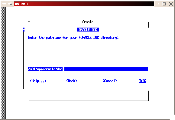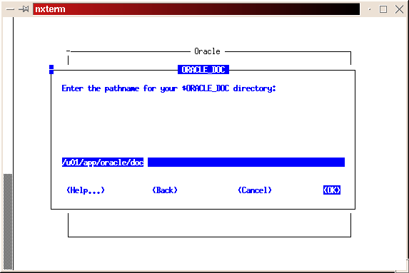 Make the directory where the on-line documentation will be installed (mkdir /u01/app/oracle/doc). Link the directory to correct a bug in the install process: