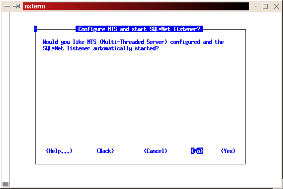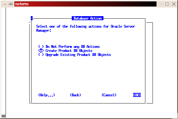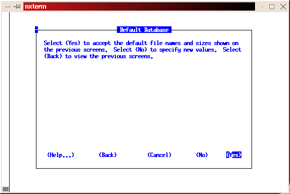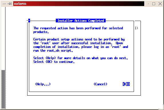 The installer will now create the initial database. As with the software installation, this is another good time to take a break. As before, we hope to see ``The requested action has been performed for selected products.'' message. Press return to return to the main install screen; tab to Exit, then press return; select Yes at the confirmation screen.