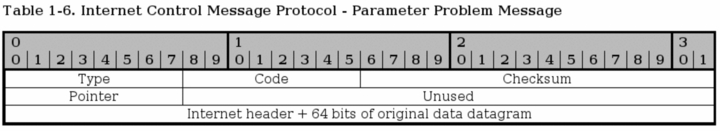 The parameter problem ICMP uses type 12 and it has 2 codes that it uses as well. Parameter problem messages are used to tell the sending host that the gateway or receiving host had problems understanding parts of the IP headers such as errors, or that some required options where missing.