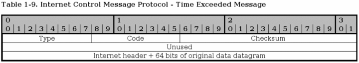 The TTL equals 0 ICMP type is also known as Time Exceeded Message and has type 11 set to it, and has 2 ICMP codes available. If the TTL field reaches 0 during transit through a gateway or fragment reassembly on the destination host, the packet must be discarded. To notify the sending host of this problem, we can send a TTL equals 0 ICMP packet. The sender can then raise the TTL of outgoing packets to this destination if necessary.