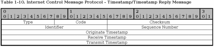Each timestamp message also contains the same identifiers and sequence numbers as the ICMP echo packets.