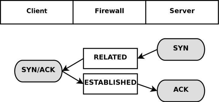 The solution to this problem is to add a special helper to the connection tracking module which will scan through the data in the control connection for specific syntaxes and information. When it runs into the correct information, it will add that specific information as RELATED and the server will be able to track the connection, thanks to that RELATED entry. Consider the following picture to understand the states when the FTP server has made the connection back to the client.
