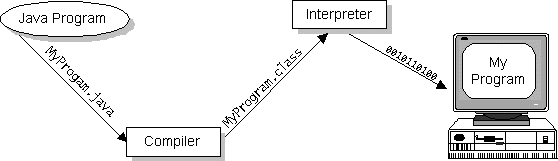 Java is also unusual in that each Java program is both compiled and interpreted. With a compiler, you translate a Java program into an intermediate language called Java bytecodes--the platform-independent codes interpreted by the Java interpreter. With an interpreter, each Java bytecode instruction is parsed and run on the computer. Compilation happens just once; interpretation occurs each time the program is executed. This figure illustrates how this works.