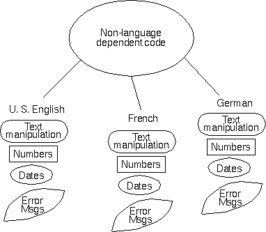 - Each new locale requires a huge effort to locate and modify all of the language-dependent features of the program.