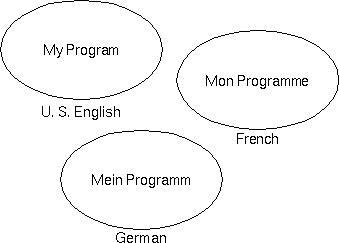 At this point, some sales person in Europe says that the company could make millions if the program "spoke French and German". The programmers kick into high gear and create two new versions of the program: One that speaks French and the other that speaks German:Modifying a program for use in a specific locale is called localization. Localization includes the obvious translation of GUI labels and error messages, but it also includes the customization of any feature, such as right to left text processing and collation rules, for the target locale.