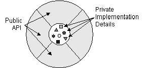 This conceptual picture of an object--a nucleus of variables packaged within a protective membrane of methods--is an ideal representation of an object and is the ideal that designers of object-oriented systems strive for. However, it's not the whole story. Often, for implementation or efficiency reasons, an object may wish to expose some of its variables or hide some of its methods.