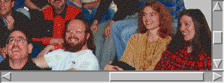 By default, a scroll pane's scrollbars are visible only when they're needed. For example, if a scroll pane is wide enough to show its child's full width, then the horizontal scrollbar isn't needed, and by default the horizontal scrollbar will completely disappear. The following picture shows an applet in which both the vertical and horizontal scrollbars are currently needed.
