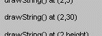 Note: Because some old browsers don't support 1.1, the above applet is a 1.0 version (here is the 1.0 code; here's the 1.1 code). To run the 1.1 version of the applet, go toexample-1dot1/TextXY.html.yargument is5, which leaves only 5 pixels above the baseline for the string -- not enough for most fonts. The middle string probably shows up just fine, unless you have a huge default font. Most of the letters in the bottom string display fine, except for letters with descenders. All descenders in the bottom string are cut off, since the code that displays this string doesn't allow room for them.Note: The text-drawing methods' interpretation of