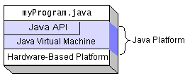 The following figure depicts a program that's running on the Java platform. As the figure shows, the Java API and the virtual machine insulate the program from the hardware.