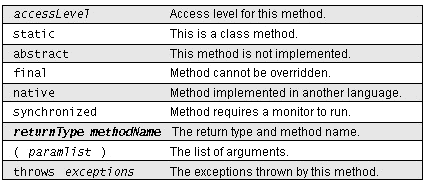 Each element of a method declaration is further defined below: