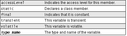 volatilekeyword is used to prevent the compiler from performing certain optimizations on a member. This is an advanced Java feature, used by only a few Java programmers, and is outside the scope of this tutorial.- type
