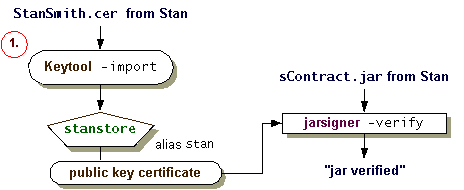 Now acting as Ruth, who receives the signed JAR file and the certificate file from Stan, perform the following steps, as shown in the figure.