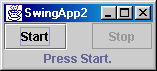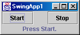 2. Copy SwingApp1.java to SwingApp2.java, and modify SwingApp2 so that the Stop button is initially disabled. Implement and register one or two action listeners so that when the user clicks either button, the clicked button is disabled, the other button is enabled, and the label is updated appropriately. Your application should look like this: