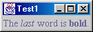 1. Show the code that creates a label displaying the following text, with the italics and boldface as shown in this screenshot: